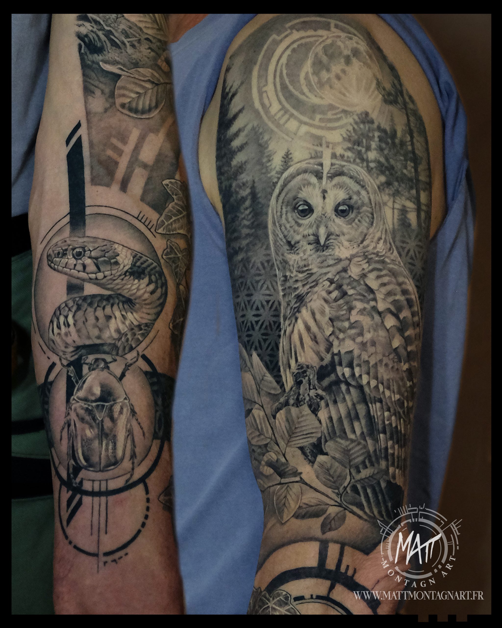 Autodidacte et passionné par le dessin, j'ai commencé le tatouage très tôt et ma recherche a toujours été la même : celle de faire des tatouages complexes, à la fois lisibles et contrastés.